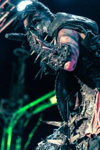 DAAP: The look came from my lifelong love of horror movies, namely the slasher flicks of the 80’s. The strong visuals and hyperbolic villainy. The gore. The visceral primal elements. Then seeing bands like Rammstein, Skinny Puppy, early Manson, Zombie…they just didn’t play music but provided a full performance. People deserve that – so that was something that pushed me on and inspired me.