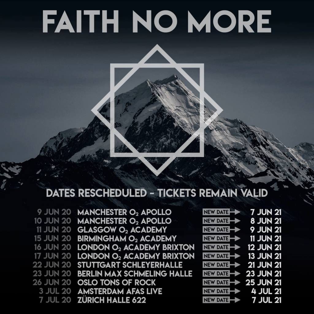 FAITH NO MORE ANNOUNCE RESCHEDULED EUROPEAN TOUR DATES