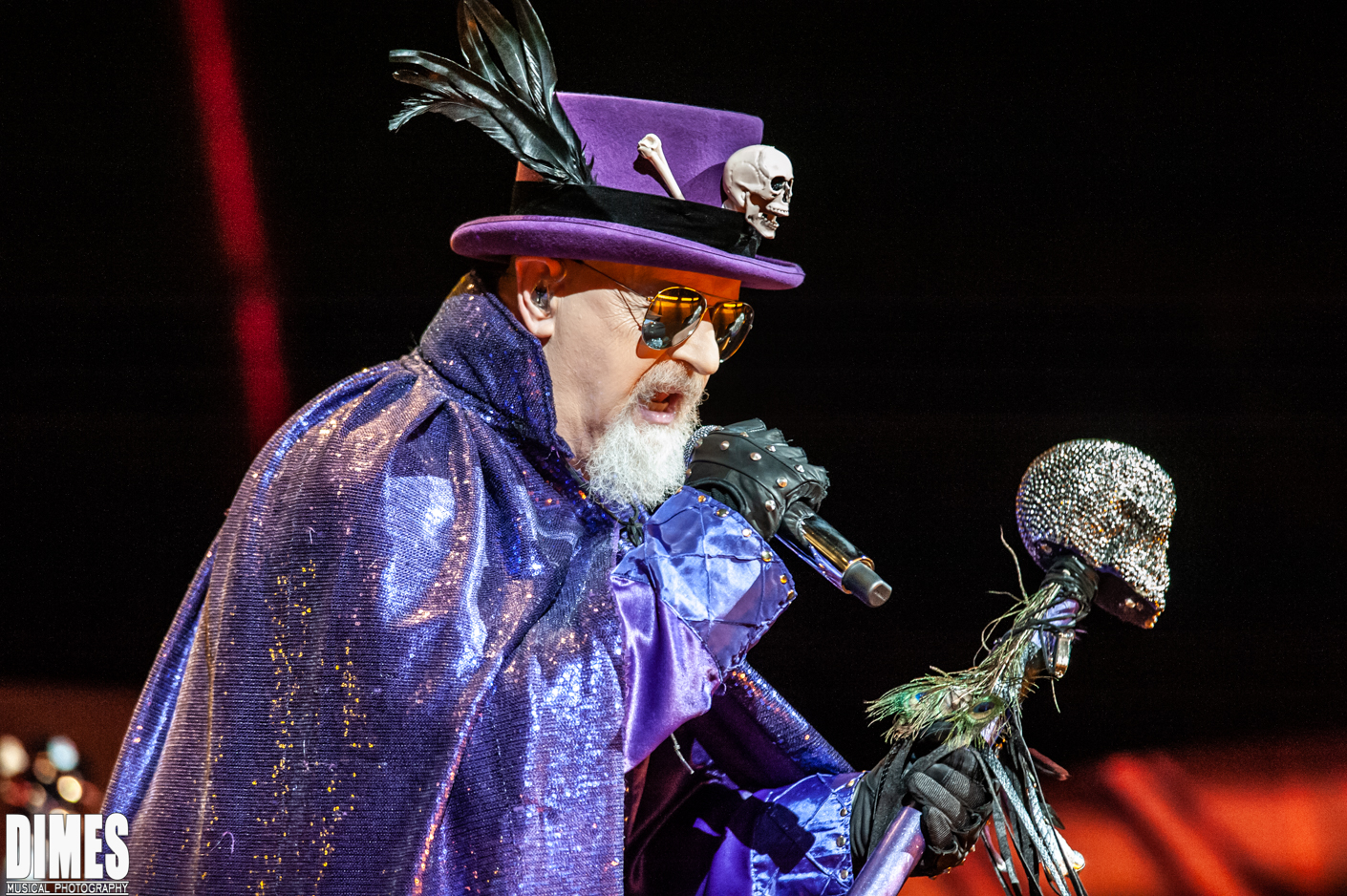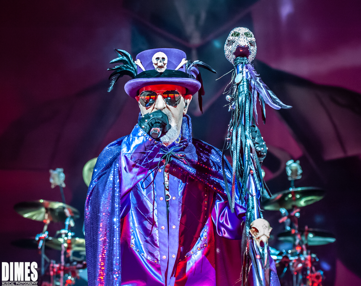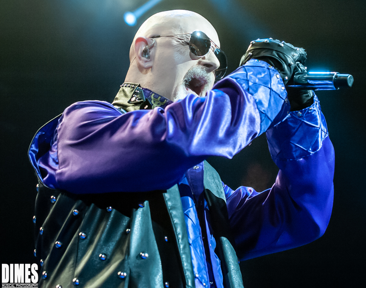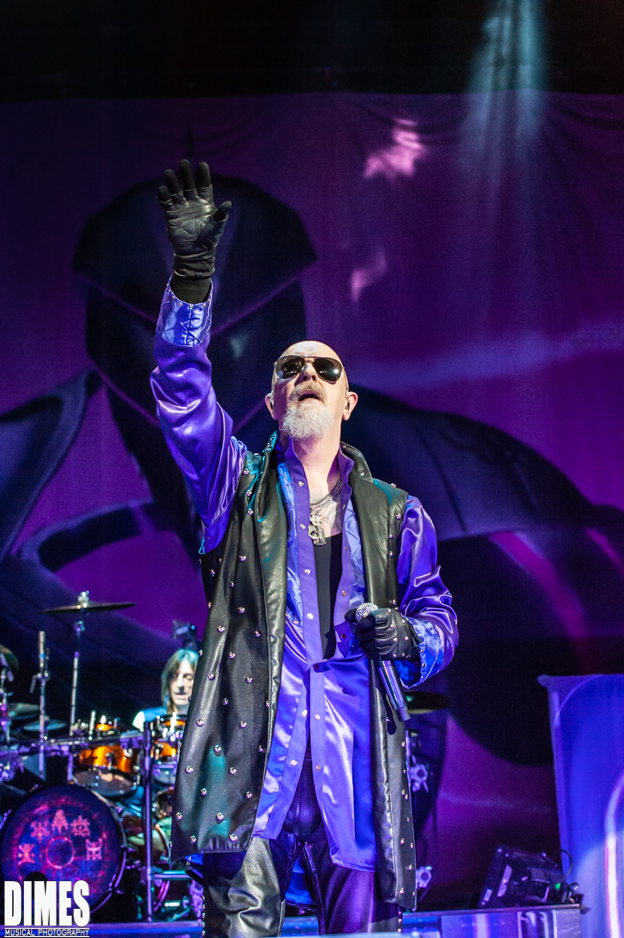 Clad in a purple majestic robe among dramatic stage lighting, fog, and screams from the crowd, Rob Halford sauntered onto the stage.